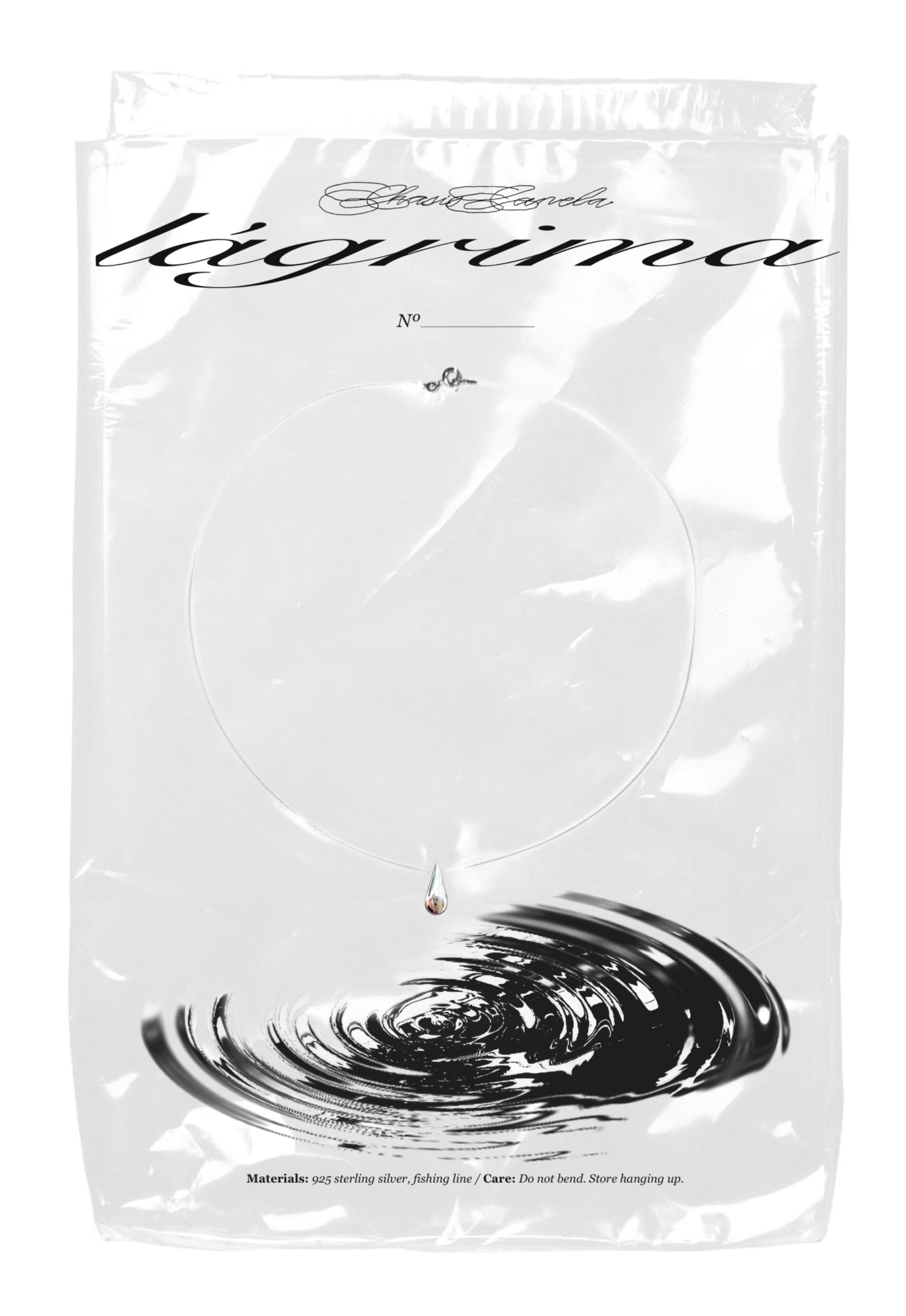 'Silver': Solid 925 sterling silver teardrop and clasp, fishing line.